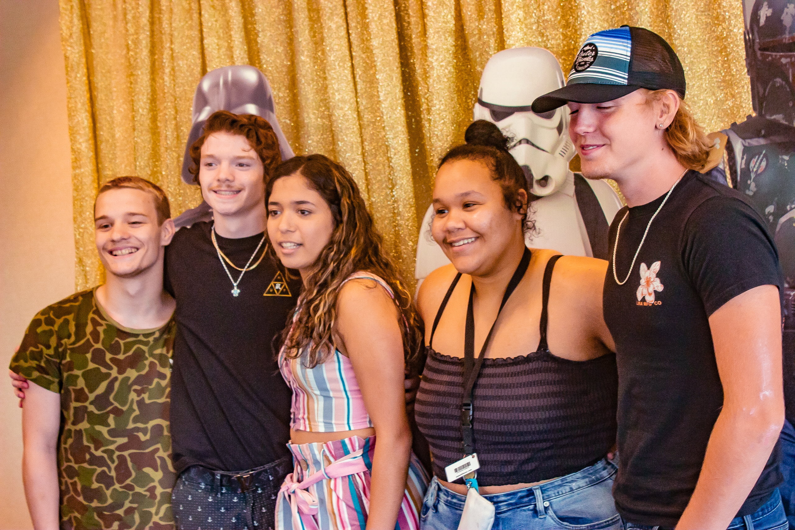 When renting a photo booth, keep in mind that its primary goal is to amuse your guests and create an experience. Look for a booth that’s engaging and fun. It’s vital to have props and a custom backdrop, we even have cutouts mostly Star Wars characters but we can get anyone here!!